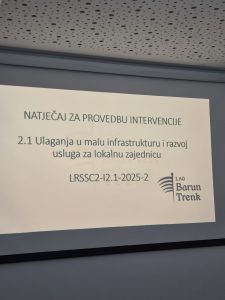 LAG Barun Trenk održao je 15. rujna 2025. godine, u Coworking centru Panora, radionicu vezano uz objavu LAG natječaja za provedbu intervencije 2.1 Ulaganja u malu infrastrukturu i razvoj usluga za lokalnu zajednicu iz Lokalne razvojne strategije LAG-a za programski period 2023.-2027. (OZNAKA NATJEČAJA: LRSSC2-I2.1-2025-2) za područje gradova Požega, Pleternica i Kutjevo, te područja općina: Brestovac, Kaptol, Jakšić i Velika.